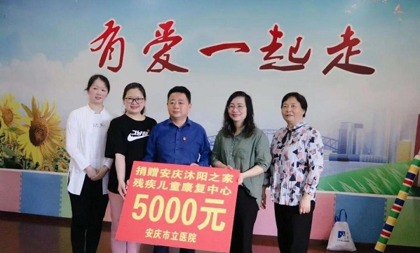 在第三十一次全國助殘日來臨之際,恰逢中國共產(chǎn)黨成立100周年。為了進(jìn)一步傳承中華民族扶殘、助殘的傳統(tǒng)美德,發(fā)揚(yáng)中國共產(chǎn)黨為人民服務(wù)的初心使命,安慶市立醫(yī)院黨委書記鐘勝、黨委委員、紀(jì)委書記方銀菊、副院長朱娟及相關(guān)科室主任一行來到沐陽之家殘疾兒童康復(fù)中心開展以“學(xué)史力行,我為群眾辦實(shí)事”為主題的黨員助殘志愿服務(wù)活動,為這里的孩子們送來愛心體檢,并捐贈善款5000元。