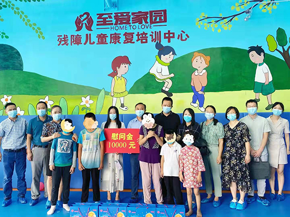 隨后,江俊杰一行給至愛(ài)家園送上了中秋節(jié)慰問(wèn)金,并給機(jī)構(gòu)每位在訓(xùn)殘疾兒童送去了月餅,把黨和政府濃濃的關(guān)懷和溫暖送給孩子們,讓他們過(guò)上一個(gè)幸??鞓?lè)的節(jié)日。