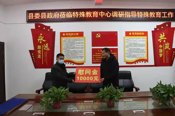 丁霞光一行詳細(xì)了解特教中心疫情防控和目前辦學(xué)情況,教學(xué)及康復(fù)成果,特教中心負(fù)責(zé)人對中心情況進行了匯報。在了解了特教中心情況后,丁霞光要求要繼續(xù)扎實做好疫情防控工作,落實包保責(zé)任制度,叮囑縣殘聯(lián)和縣教育局負(fù)責(zé)人要繼續(xù)加大力度關(guān)心關(guān)愛特殊群體,支持辦好特殊教育,并代表縣委縣政府送上了春節(jié)慰問金。