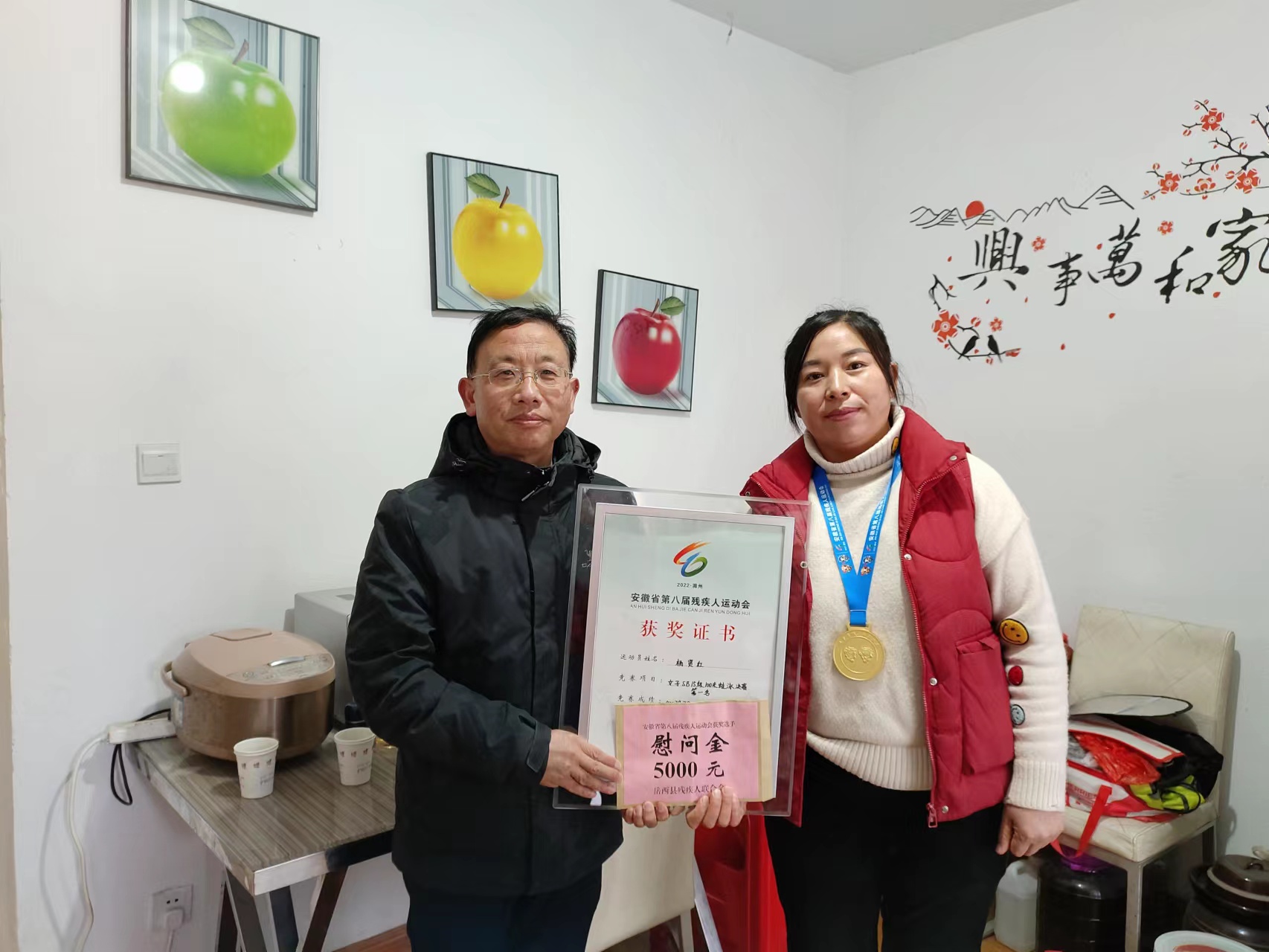 岳西縣殘聯(lián)慰問安徽省殘運會游泳項目岳西選手楊賢紅