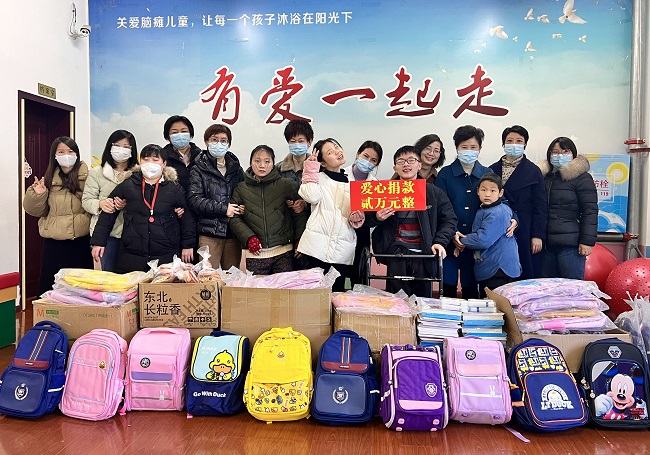 2月22日上午,安慶市政協(xié)副秘書長吳曉藝、人口和資源環(huán)境委員會主任高峽、社會和法治委員會主任寧惠、文化文史和學(xué)習(xí)委員會主任陳亞玲及市政協(xié)機(jī)關(guān)等同志一行來到沐陽之家殘疾兒童康復(fù)中心,看望慰問在訓(xùn)腦癱兒童,并為他們送來了價(jià)值7000元的書包、文具、食品等慰問品(食品由市政協(xié)個(gè)人善款購買)。市政協(xié)委員、岳西縣徽宏茶業(yè)開發(fā)有限公司經(jīng)理林麗霞捐助善款2萬元。