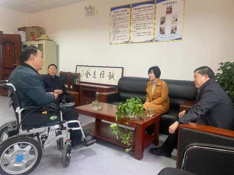 3月8日上午,潛山市政協(xié)副主席陳倩、市政協(xié)教科衛(wèi)體委員會主任彭友丁一行到安徽黃勇農(nóng)產(chǎn)品開發(fā)有限公司走訪調(diào)研,市殘聯(lián)主要負責人陪同。