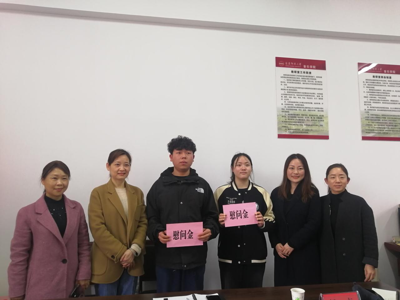 3月22日,宜秀區(qū)殘聯(lián)理事長劉曉燕一行到安慶師范大學(xué)看望慰問參加市殘聯(lián)文藝匯演兩名殘疾大學(xué)生,音樂學(xué)院高艷院長及輔導(dǎo)員陪同。