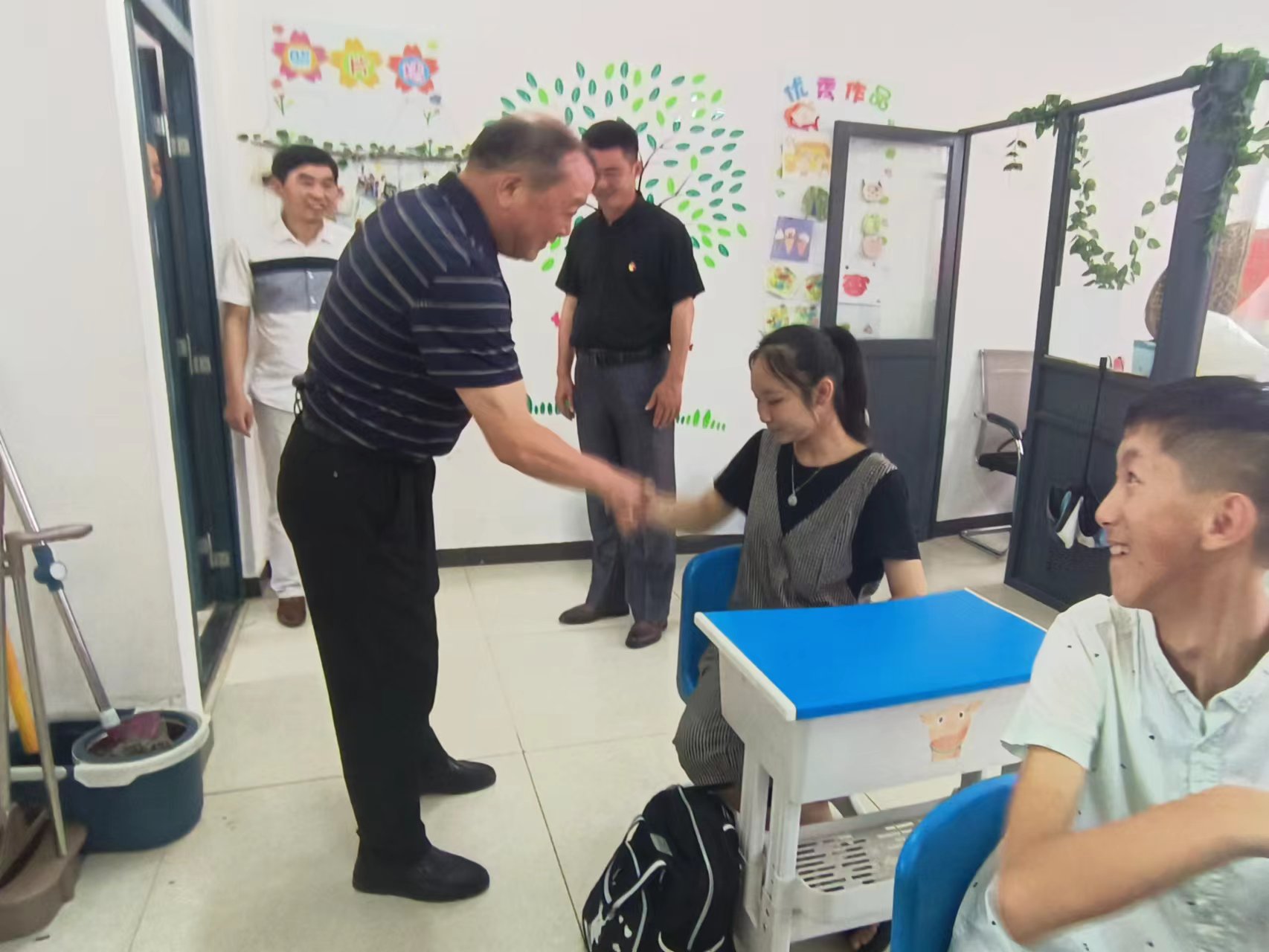 來(lái)到望江縣特教學(xué)校,郝雪飛聽(tīng)取了該校負(fù)責(zé)人相關(guān)介紹,認(rèn)真察看了該校康復(fù)區(qū)建設(shè)運(yùn)行情況,在學(xué)生課堂,郝雪飛與學(xué)生們互動(dòng),了解孩子們的學(xué)習(xí)情況。郝雪飛要求縣殘聯(lián)要加強(qiáng)殘疾人康復(fù)機(jī)構(gòu)建設(shè),強(qiáng)化擴(kuò)量提質(zhì),加強(qiáng)資金和制度保障,使更多殘疾人享受到黨的惠殘政策。