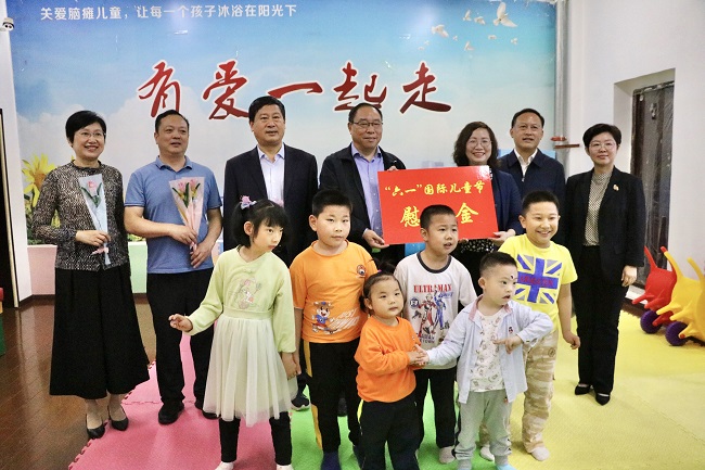 章松一行走進(jìn)孩子們中間與大家親切交流,觀看了他們的教育康復(fù)成果,熱情鼓勵(lì)他們快樂學(xué)習(xí),積極康復(fù)治療,預(yù)祝他們“六一”兒童節(jié)快樂。孩子們也紛紛送上了親手制作的手工花束,用自己特有的方式表達(dá)對(duì)章主席一行的歡迎和感謝。