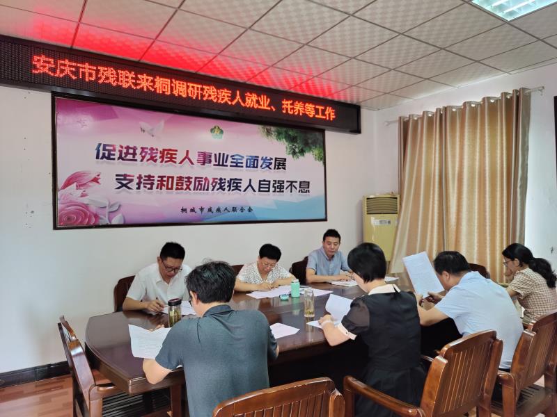6月27日上午,安慶市殘聯(lián)副理事長陳嘉帶隊,到桐城市開展2023年高校應(yīng)屆殘疾畢業(yè)生就業(yè)情況和部分業(yè)務(wù)工作調(diào)研,桐城市殘聯(lián)主要負(fù)責(zé)人及相關(guān)業(yè)務(wù)負(fù)責(zé)人參與調(diào)研。