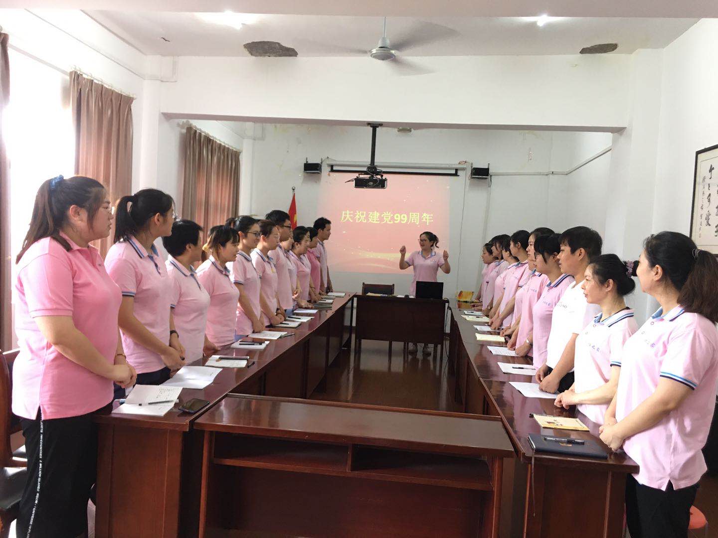 為慶祝建黨99周年,2020年7月1日,迎江沐陽(yáng)之家黨支部組織全體員工開(kāi)展主題黨日活動(dòng),齊唱《沒(méi)有共產(chǎn)黨就沒(méi)有新中國(guó)》,在歌聲中感受初心,重溫使命。