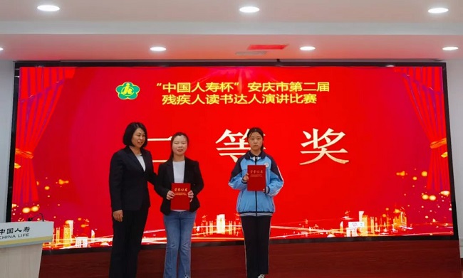 迎江區(qū)沐陽(yáng)之家吳心越榮獲“中國(guó)人壽杯”安慶市殘疾人讀書達(dá)人演講比賽二等獎(jiǎng)