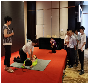 市立醫(yī)院急診科副主任醫(yī)師朱良華醫(yī)生為學(xué)員講解“心肺復(fù)蘇”急救知識。朱醫(yī)生首先講解了猝死概念及病因,然后引出了最有效的搶救方法---心肺復(fù)蘇,幫助大家了解和掌握心肺復(fù)蘇急救知識。兩位醫(yī)生還現(xiàn)場通過模型操作、手把手對學(xué)員現(xiàn)場操作進行指導(dǎo),并就相關(guān)醫(yī)療知識與學(xué)員一對一進行問診交流。