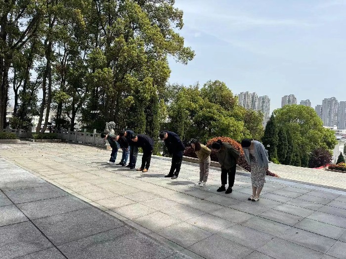 圖為殘聯(lián)全體職工向烈士紀(jì)念碑鞠躬默哀