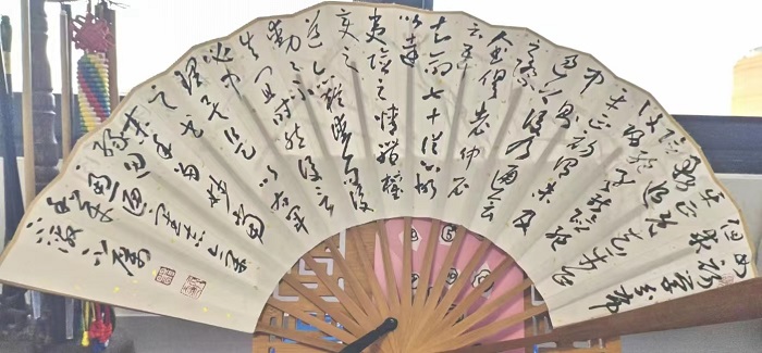 圖為殘疾人書法家朱丙夫扇面作品