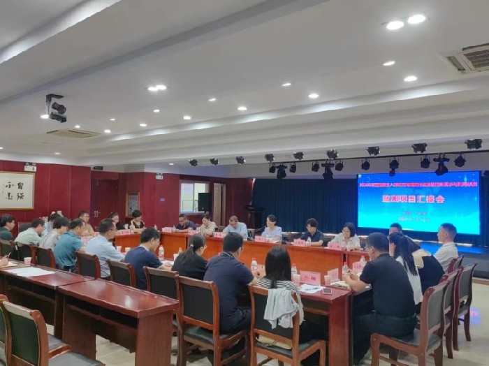 圖為督導(dǎo)組一行聽取聽力監(jiān)測項目工作匯報