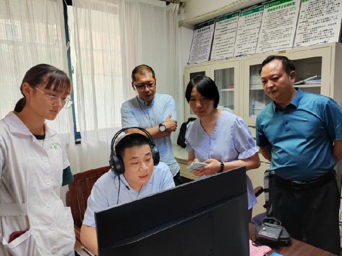 圖為督導(dǎo)組一行在桐城市雙崗鎮(zhèn)龍山村現(xiàn)場指導(dǎo)聽力監(jiān)測工作