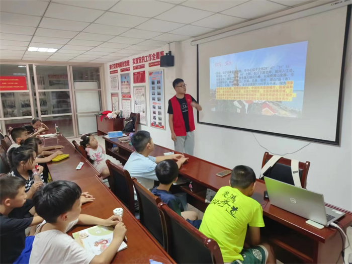 每天上午,在社區(qū)文化站內(nèi),大學(xué)生志愿者通過圖文資料和視頻,首先介紹安慶的人文歷史和自然景觀,從長江之畔的壯麗風(fēng)光到天柱山的巍峨挺拔,每一個(gè)場景都仿佛一幅幅生動的畫卷在眼前徐徐展開,志愿者帶領(lǐng)小朋友們了解安慶的自然風(fēng)光和人文歷史,有時(shí)候也會為小朋友講述陳獨(dú)秀、鄧稼先的名人故事,通過這些精彩的故事,小朋友們對自己的家鄉(xiāng)有了更深一步的了解。