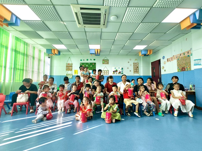 圖為咿呀班兒童領(lǐng)取中秋節(jié)日小禮品