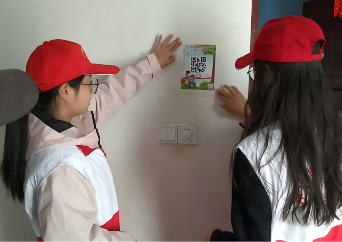 圖為志愿者為殘疾人家中貼碼