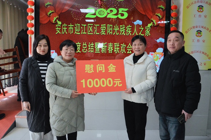 金蛇賀瑞辭舊歲,祥龍送福啟新程。元月15日上午,安慶市迎江區(qū)匯愛陽(yáng)光殘疾人之家年度總結(jié)暨迎新春聯(lián)歡會(huì)。市殘聯(lián)副理事長(zhǎng)陳嘉、迎江區(qū)殘聯(lián)等領(lǐng)導(dǎo)參加。