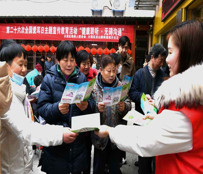 圖為大觀區(qū)在龍山路榮升社區(qū)開展第二十六次全國愛耳日主題宣傳活動(dòng)