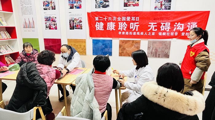 活動(dòng)在孝肅路街道黨群服務(wù)站展開,孝肅路街道社區(qū)衛(wèi)生服務(wù)中心醫(yī)療團(tuán)隊(duì)為到場(chǎng)居民開展免費(fèi)的聽力篩查和基礎(chǔ)醫(yī)療檢查服務(wù),耐心細(xì)致地為每位居民檢測(cè)聽力狀況,并根據(jù)檢查結(jié)果給出個(gè)性化的健康建議,增強(qiáng)居民對(duì)自我聽力健康的認(rèn)知與管理能力。