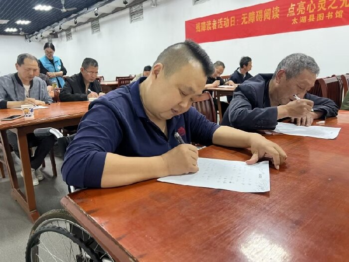 文化助殘,豐富生活。太湖縣殘聯(lián)結(jié)合我縣圖書館“殘障讀者活動(dòng)日”廣泛開展文化助殘活動(dòng),豐富殘疾人精神生活。5月12日開展殘障讀者活動(dòng)日暨助殘日“妙語連珠 ‘語’你同行”成語閱讀活動(dòng);5月16日結(jié)合殘疾人文化進(jìn)家庭五個(gè)一項(xiàng)目,為參加活動(dòng)的70余名殘疾人提供了一次免費(fèi)體檢、舉辦了一次殘疾預(yù)防專家講座、組織殘疾人觀看了一次愛祖國主義電影?;顒?dòng)現(xiàn)場(chǎng),還為殘疾人送上慰問品,鼓勵(lì)他們多多參與文化活動(dòng),豐富精神生活,快樂享受人生。