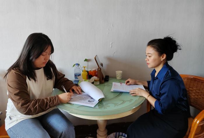 圖為“政策宣講員”入戶走訪現(xiàn)場