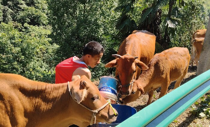 如今,胡星的養(yǎng)牛場已頗具規(guī)模,養(yǎng)牛的數(shù)量也達到了20頭。他采用科學的養(yǎng)殖方式,注重飼料搭配和牛舍環(huán)境管理,他養(yǎng)的牛品質(zhì)優(yōu)良,深受市場歡迎。隨著養(yǎng)牛場效益越來越好,他主動吸納周邊的村民到養(yǎng)牛場務工,為他們提供穩(wěn)定的收入來源。同時,他還向其他有養(yǎng)牛意愿的村民傳授養(yǎng)殖經(jīng)驗,提供技術(shù)支持,帶動大家一起發(fā)展養(yǎng)牛產(chǎn)業(yè)。