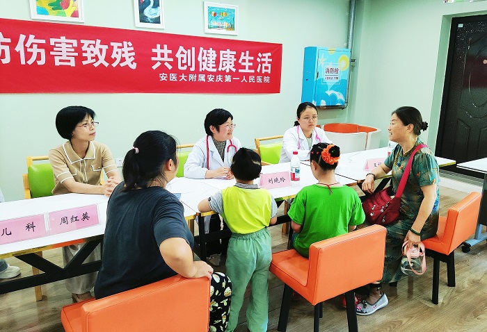 在第九個“全國殘疾預(yù)防日”到來之際,8 月 21 日下午,安醫(yī)大附屬安慶第一人民醫(yī)院兒科、保健科醫(yī)護人員走進沐陽之家開展義診服務(wù)。