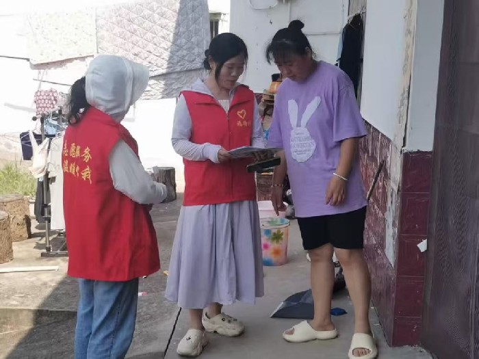 圖為志愿者入戶宣傳安全應(yīng)急知識