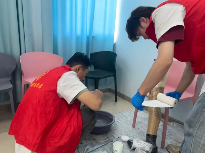 評估現(xiàn)場,評估小組詳細詢問了每名適配對象的身體情況、病史等,耐心檢查殘疾兒童站立、行走及肢體發(fā)育情況,并認真填寫輔具評估表,隨后由技術(shù)人員為需要假肢、矯形器等輔助器具的對象進行了專業(yè)測量與取型,切實做到因人適配、因需適配。