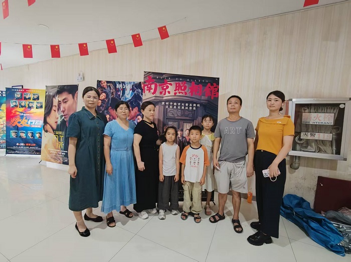 圖為殘疾人家庭代表共同觀看《南京照相館》前合影