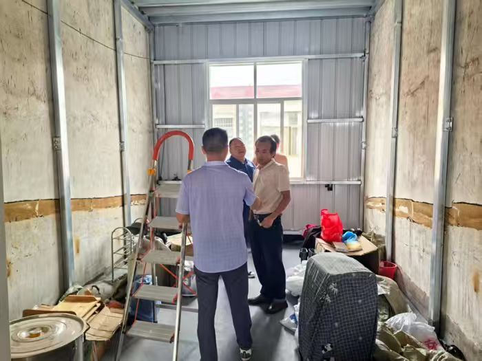 陳東在日常走訪中了解到,徐魏魏、徐上兄弟倆位于鎮(zhèn)上的門面房,每逢雨天屋頂就嚴(yán)重漏水,屋內(nèi)墻面早已受潮發(fā)霉,既影響經(jīng)營(yíng)也存在安全隱患。由于兄弟二人身體殘疾、家庭經(jīng)濟(jì)困難,這筆修繕費(fèi)用和找人施工的難題,成了壓在他們心頭許久的“煩心事”。得知情況后,陳東決定用“禮讓為先、溝通為要、和諧為本”的“六尺巷工作法”,幫兄弟倆徹底解決這一難題。