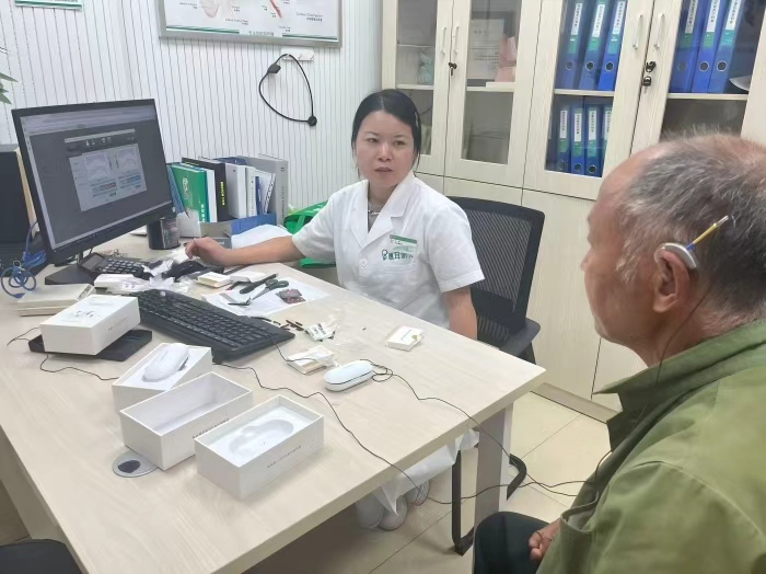 圖為助聽器適配現(xiàn)場