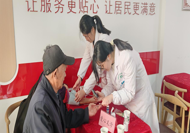圖為社區(qū)衛(wèi)生室志愿者幫助測血糖