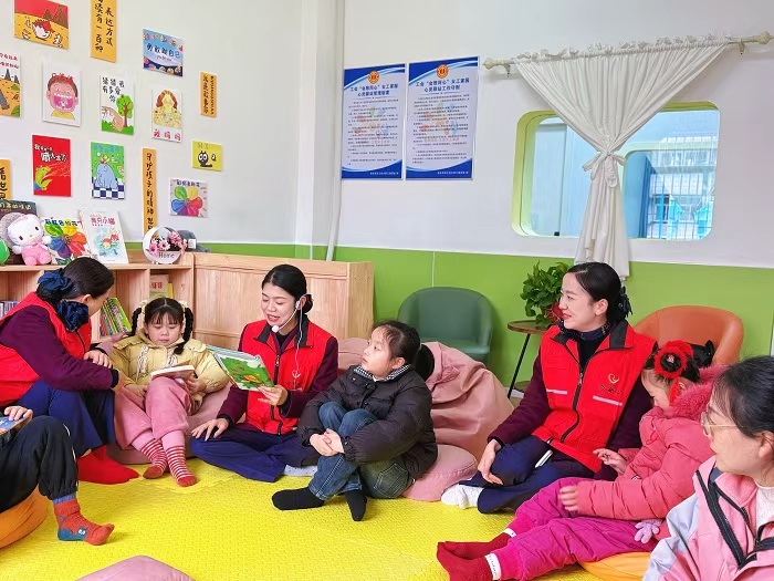 在愛心互動環(huán)節(jié),志愿者們圍坐孩子身邊,用溫柔親切的語言講述趣味故事,陪伴孩子在書香中感受閱讀樂趣;黏土手工創(chuàng)作暖意融融,志愿者手把手指導孩子揉、捏、搓、壓,耐心陪伴完成創(chuàng)意作品。孩子們在陪伴中收獲快樂與自信,現(xiàn)場洋溢著溫馨與美好。